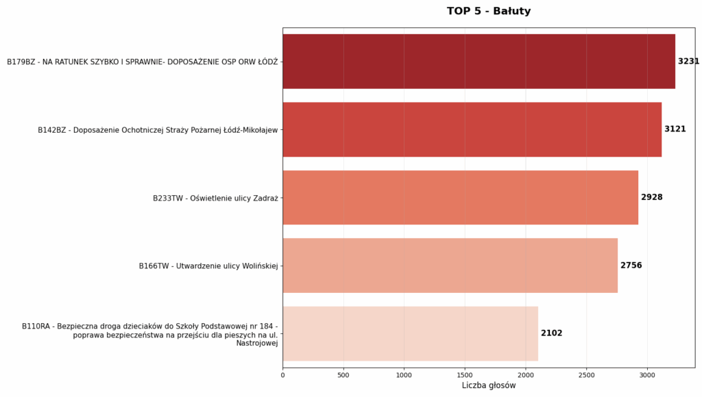 Te wyniki są imponujące, ale też niezwykle intrygujące. Skąd tak ogromne poparcie dla utwardzenia konkretnej ulicy? Czy to pospolite ruszenie sąsiadów? Zapamiętajcie te numery projektów – wrócimy do nich za chwilę w sekcji o anomaliach, bo kryje się za nimi coś więcej niż tylko sąsiedzka solidarność.
