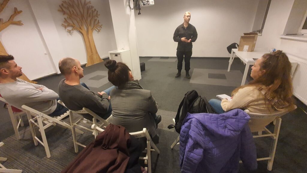 Praktycznym sprawdzianem zdobytej wiedzy było zadanie finałowe: wystąpienie przed profesjonalną kamerą i studyjnym oświetleniem. W tych kontrolowanych, a jednak stresujących warunkach, uczestnicy musieli zmierzyć się z własną tremą na oczach grupy. Proces ten domknęła wspólna analiza nagrań, podczas której oceniano wystąpienia przez pryzmat poznanych wytycznych. Ci, którzy wyrazili taką chęć, otrzymali swoje nagrania drogą mailową wraz z krótkim komentarzem przypominającym najważniejsze wskazówki. Całość procesu odbyła się z najwyższym poszanowaniem prywatności – nagrania wysłano z wyraźnym zastrzeżeniem dotyczącym ochrony wizerunku pozostałych osób obecnych w kadrze.